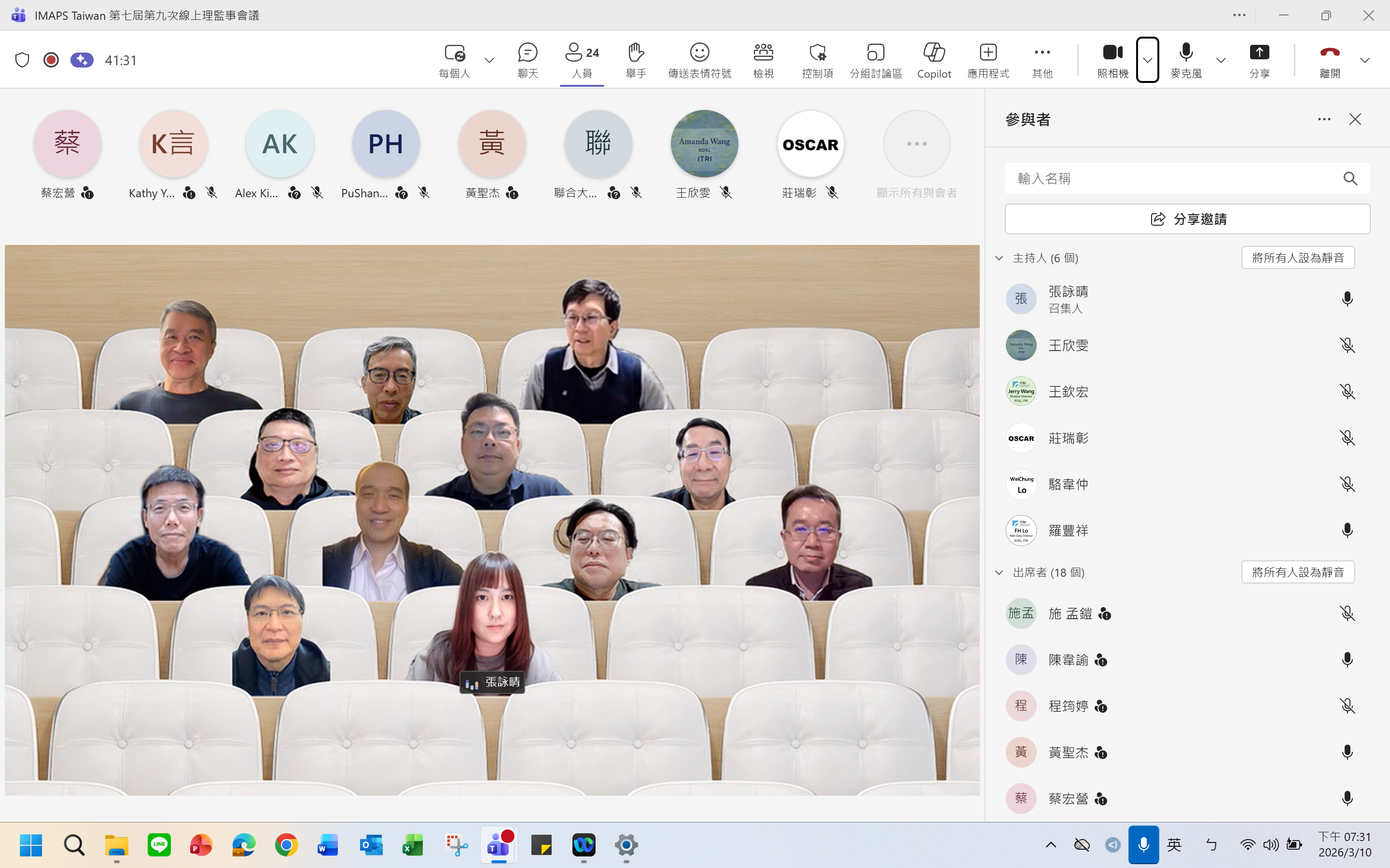 本會已順利於 3月10日(二)19:00–20:00 召開 第七屆第九次線上理監事會議。